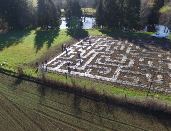 Les charmilles sont en terre pour former le labyrinthe. Maintenant faut que ça pousse..