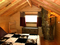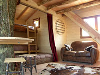 Elle se compose d'un salon et de 2 chambres. La première, située à l'étage, dispose d'un grand lit (en 140), la seconde, séparée du salon par un chêne, possède trois petits lits. Cabane chauffée, isolée et électrifiée, lits faits à l'arrivée. Bloc sanitaire à proximité.
