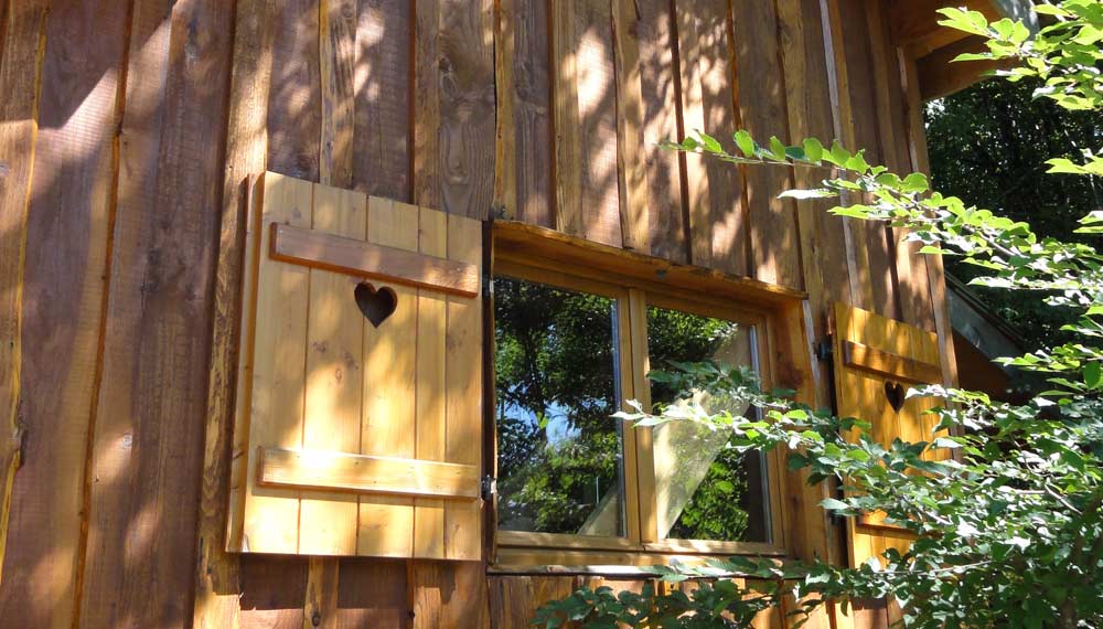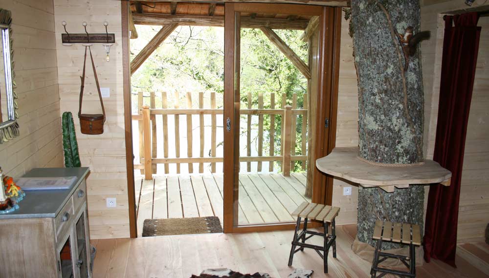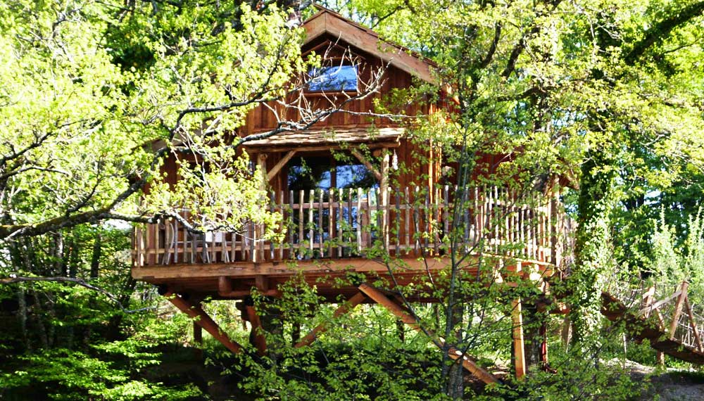 Cabane Familiale de 18 m² d'une capacité de 5 personnes, perchée à 5 mètres et accessible par un pont de singe avec terrasse de 21 m².