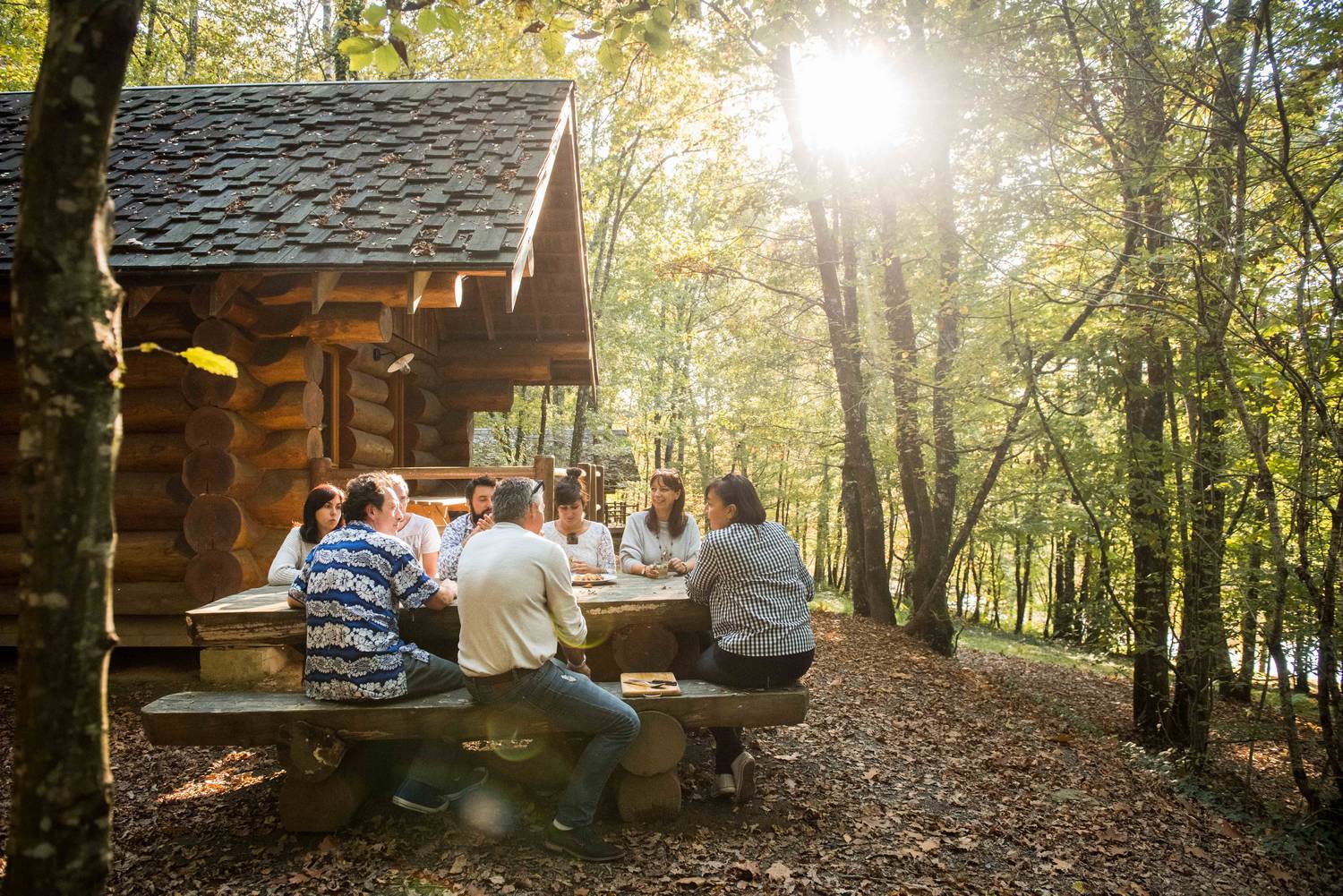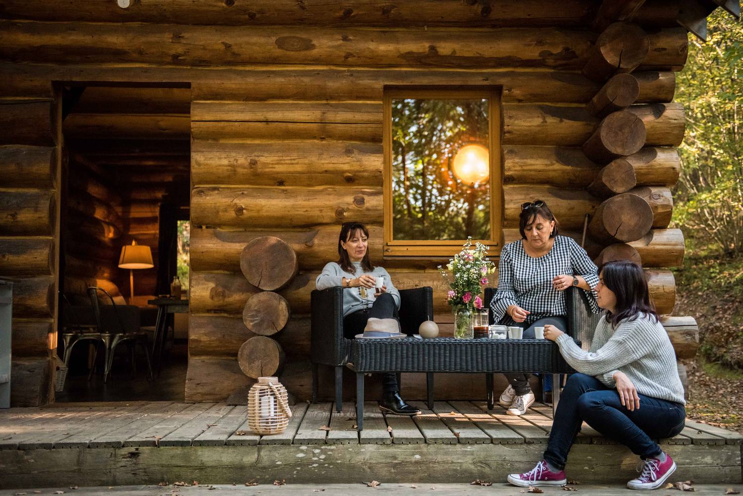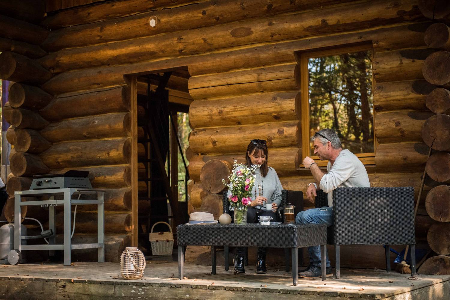 Chalet en rondins avec SPA privatif. Composée d'une grande chambre avec lit King size, salon séjour avec écran plat, une chambre de 2 lits simples en mezzanine, salle de bain avec douche à l'italienne en 120, lavabo et toilettes, sèche cheveux à disposition, peignoirs et draps de bain.