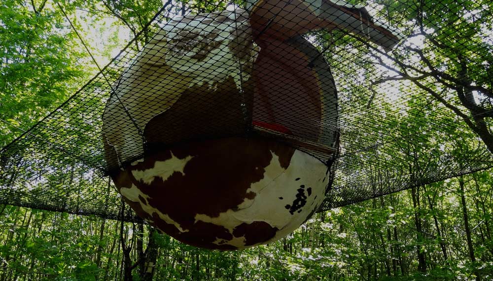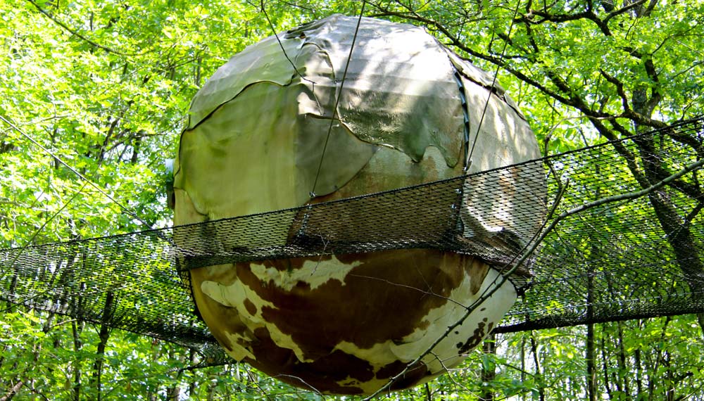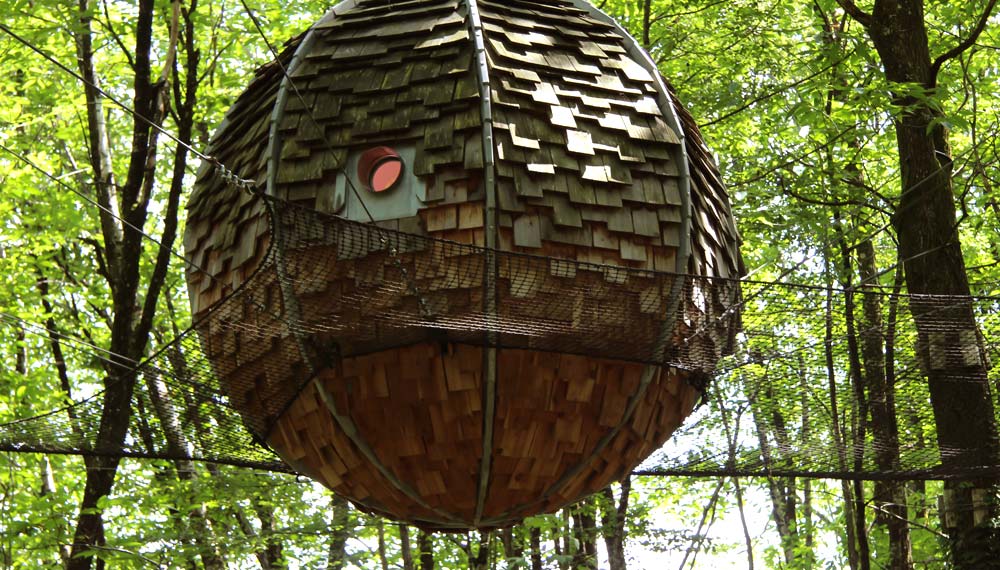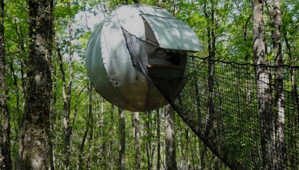 Véritable cocon pour les amoureux, le Lov’Nid est suspendu dans les arbres, au cœur d’une forêt préservée, avec un accès par filet et une grande terrasse-hamac pour profiter de la beauté de la nature.