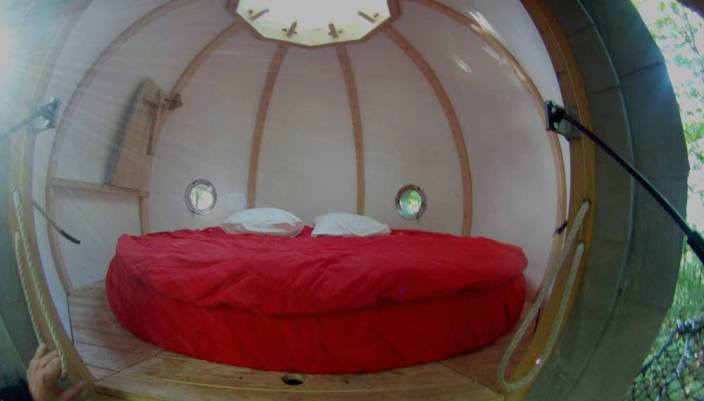 Bercés dans votre nid d’Amour, confortablement lovés dans un lit rond, son toit panoramique vous offrira des nuits magiques, les yeux tournés vers les étoiles…..