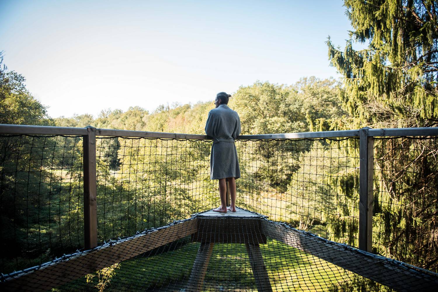 La grande surprise vient de ses murs latéraux, faits de bois et de verre, qui se déploieront selon vos envies et selon le temps, pour vous immerger complètement dans une nature luxuriante, à 7 mètres de haut. Agrémentée de 30 m2 de terrasse dont une partie en filet façon hamac géant tendu dans le vide à 10 mètres et d'un SPA Nordique dont l'eau sera chauffée à 38°, c'est au chaud, et la tête dans les étoiles que vous découvrirez le luxe, le vrai, celui de la parfaite osmose entre le végétal et l'infini ! Cabane chauffée, isolée et électrifiée, lit fait à l'arrivée et peignoirs de bain.