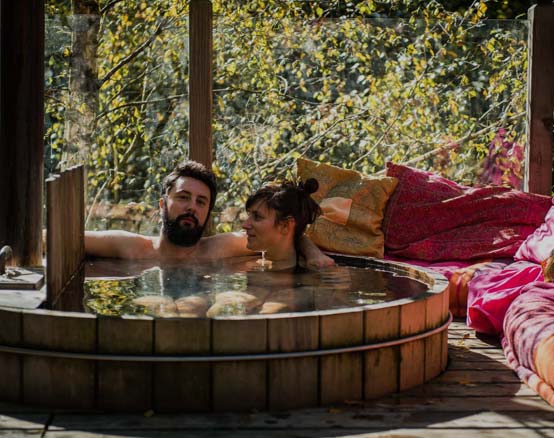 A unique moment to share, in a heated tub surrounded by nature.