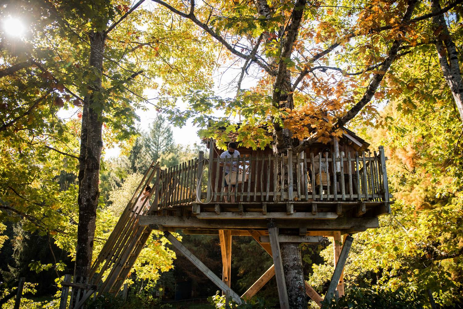 Treehouse for two people, 10m², perched 8m above the ground and reached by ladder. It consists of a small living area and double bed. Terrace of 17m² with uninterrupted view of the lake. Ideal for lovers of excitement and adventure.