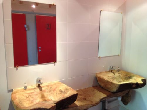 Un bloc sanitaire se trouve en haut du campement des yourtes. Il se compose de 3 douches dont une accessible pour personne à mobilité réduite, de 3 toilettes et 4 lavabo. Il est fermé et chauffée!